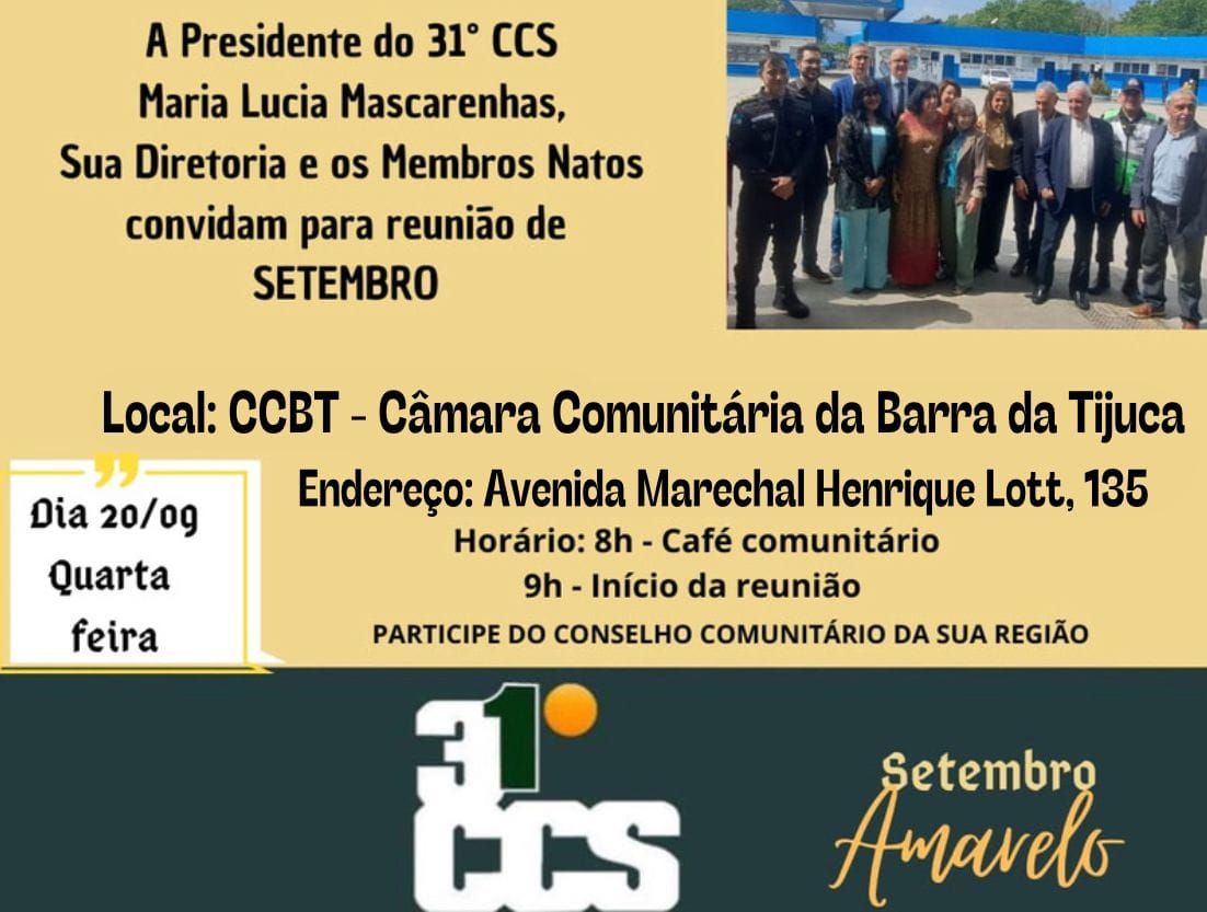 31CCS, REUNIÃO DE SETEMBRO TROCA DE ENDEREÇO, E ACONTECE NA PRÓXIMA QUARTA-FEIRA, DIA 20