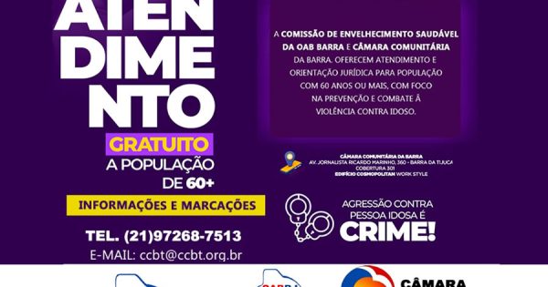 A Comissão de Envelhecimento Saudável da OAB Barra da Tijuca está promovendo atendimento e orientação jurídica gratuita voltada à população com 60 anos ou mais. A iniciativa, que acontece todas as quartas-feiras, das 14h às 16h, busca oferecer suporte legal e promover a conscientização sobre os direitos da pessoa idosa, com ênfase na prevenção e ...Câmara Comunitária da Barra promove curso sobre Noções em Segurança do Trabalho