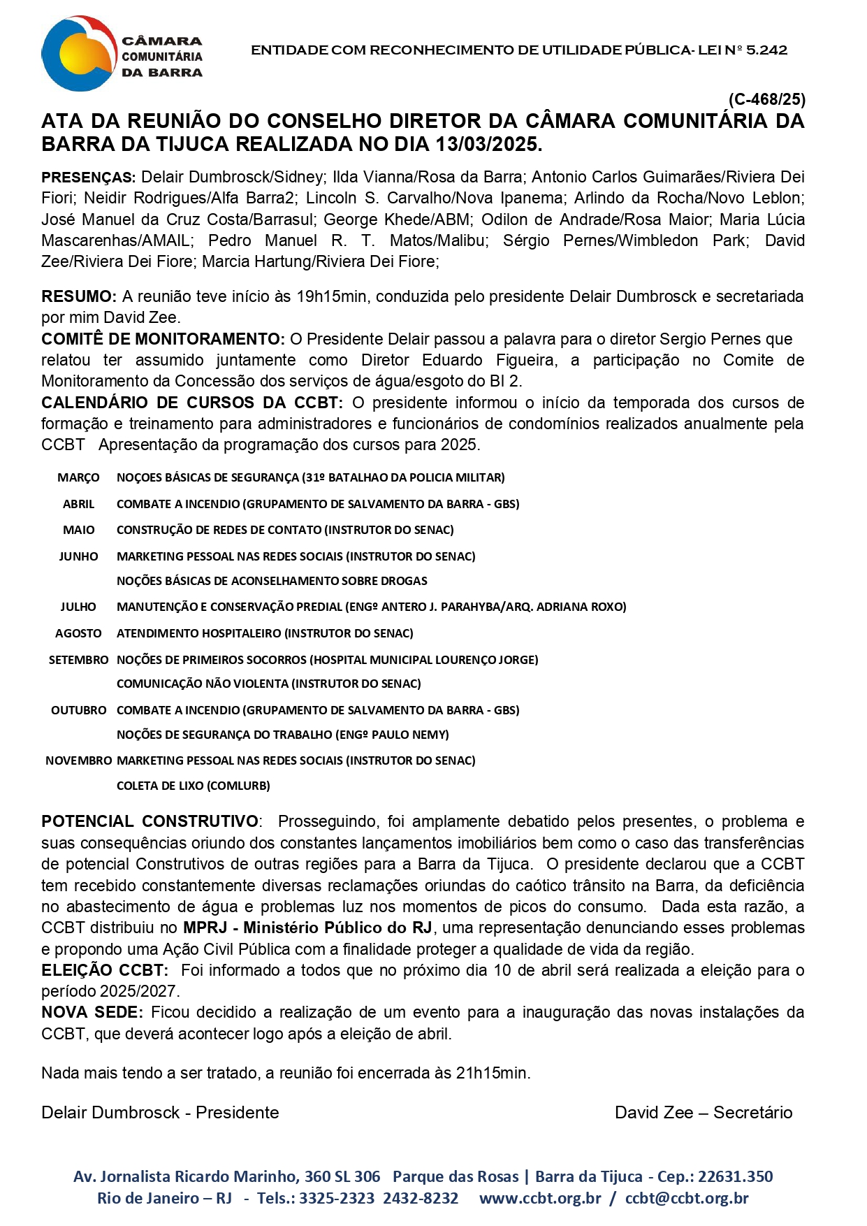 Home›Atas do Conselho Diretor da CCBT›ATA C-468/25 – ATA DA REUNIÃO DO CONSELHO DIRETOR DA CÂMARA COMUNITÁRIA DA BARRA DA TIJUCA REALIZADA NO DIA 13/03/2025